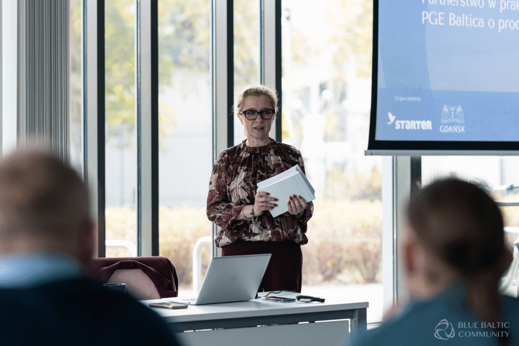 Na spotkanie Blue Baltic Community w roli partnera Gdańska Fundacja Przedsiębiorczości zaprosiła przedstawicieli PGE Baltica, spółki rozwijającej projekty morskich farm wiatrowych Grupy PGE. Eksperci PGE od wielu lat dzielą się wiedzą na temat procesów zakupowych oraz w przystępny sposób „odczarowują” przetargi, pokazując, że współpraca z dużymi inwestorami może być transparentna i dostępna również dla mniejszych firm.