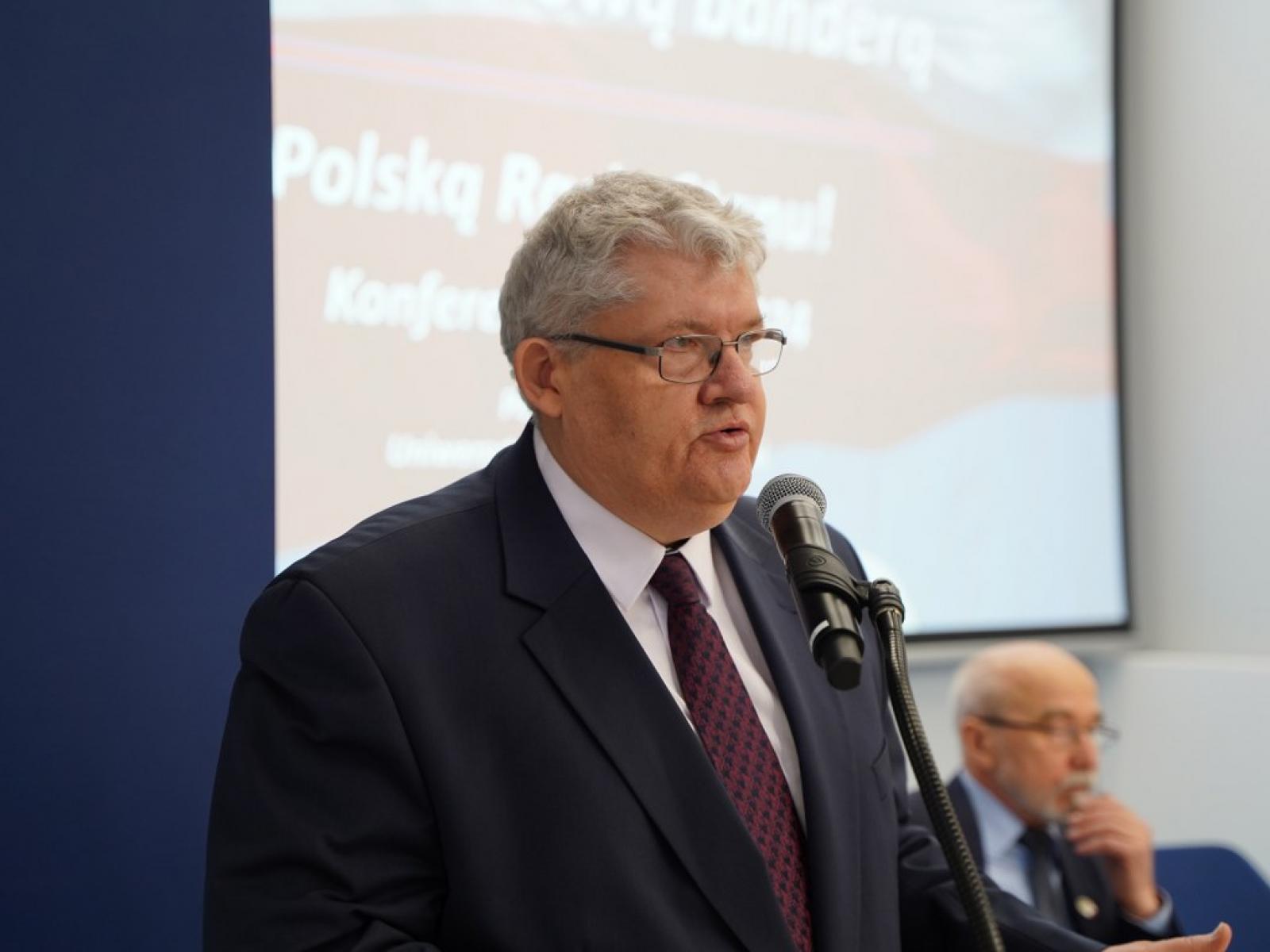 „(…) dzisiejsza konferencja odbywa się w miejscu wyjątkowym, to jest na Wydziale Nawigacyjnym Uniwersytetu Morskiego w Gdyni, a zatem uczelni, która jest armatorem trzech statków, pływających pod polską, biało-czerwoną banderą”.